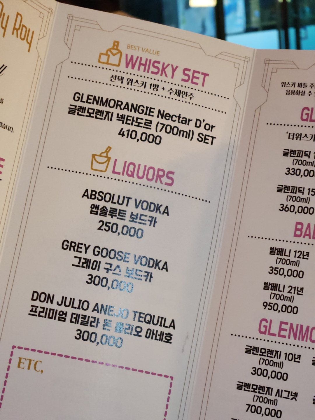 스카치, 와인 등도 있대요!